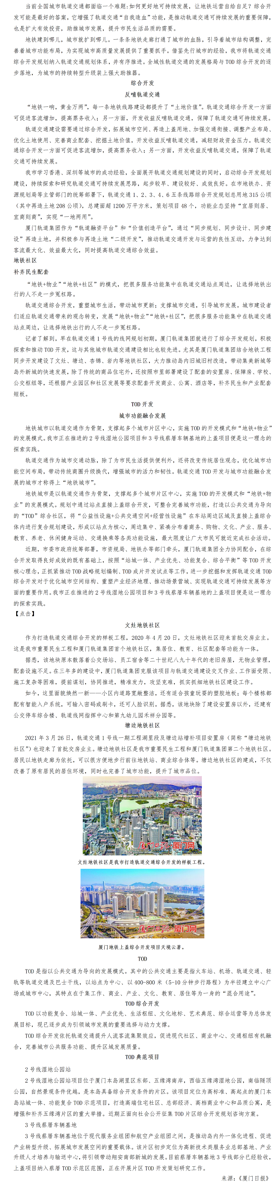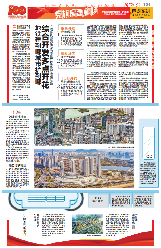 【厦门日报】:巨龙东进-厦门地铁3号线开通》专刊报道-《综合开发多点开花》