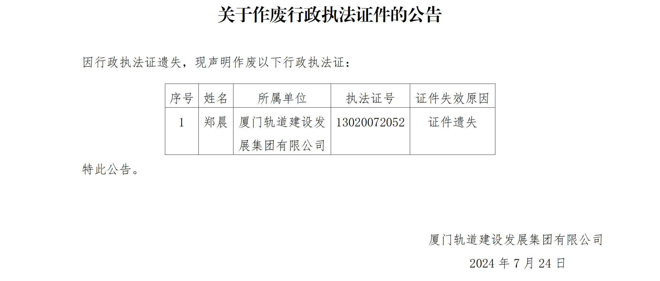 关于作废行政执法证件的公告