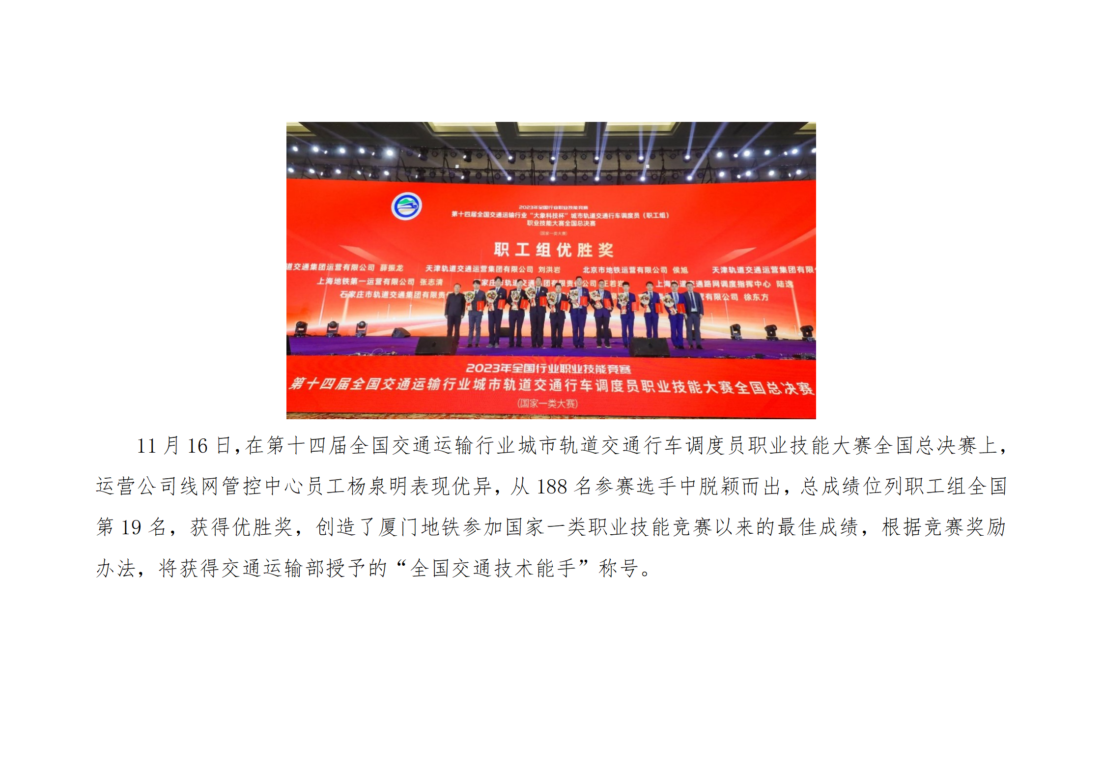 集团员工获国家技能大赛优胜奖