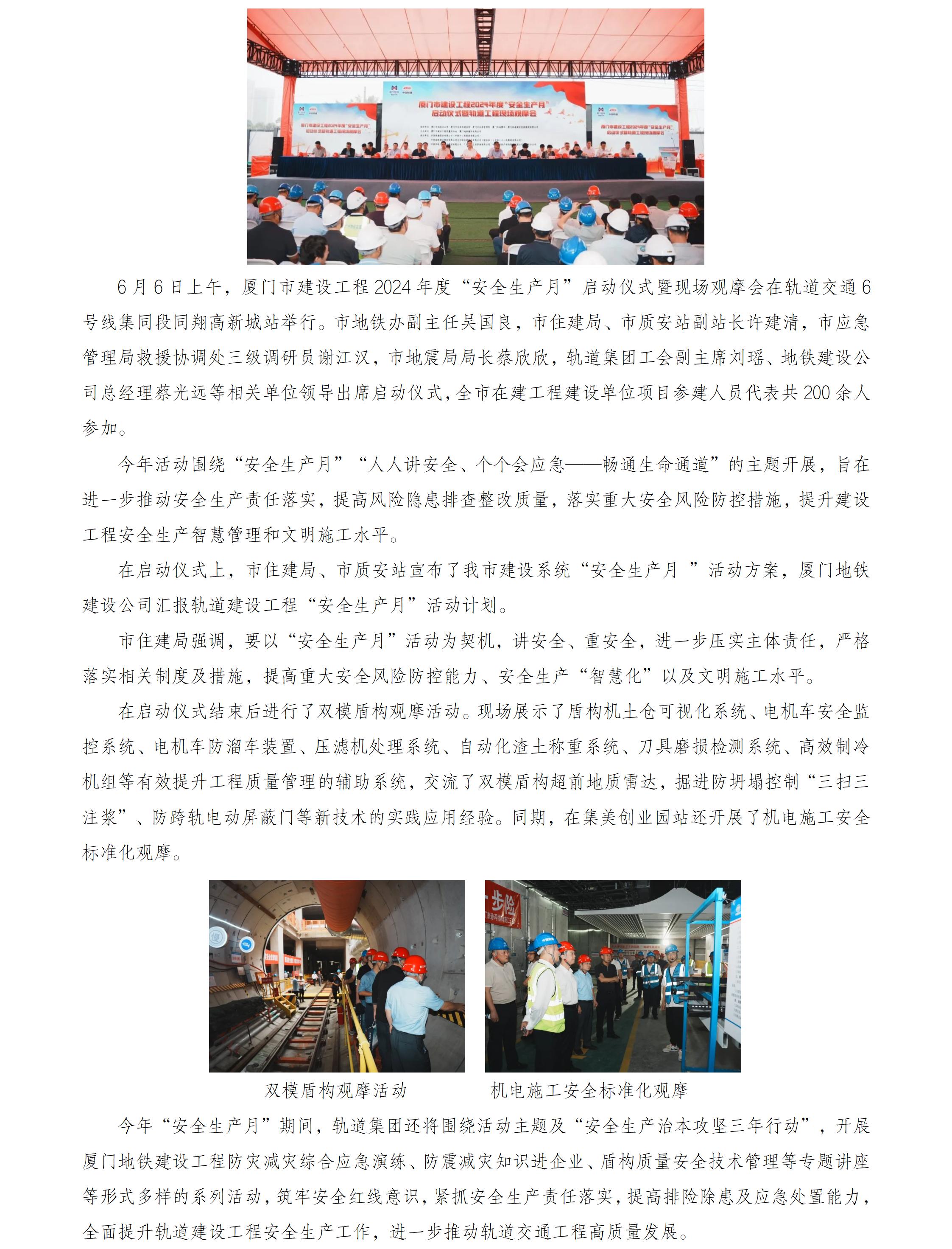 厦门市建设工程2024年度“安全生产月”启动仪式暨现场观摩会顺利举行