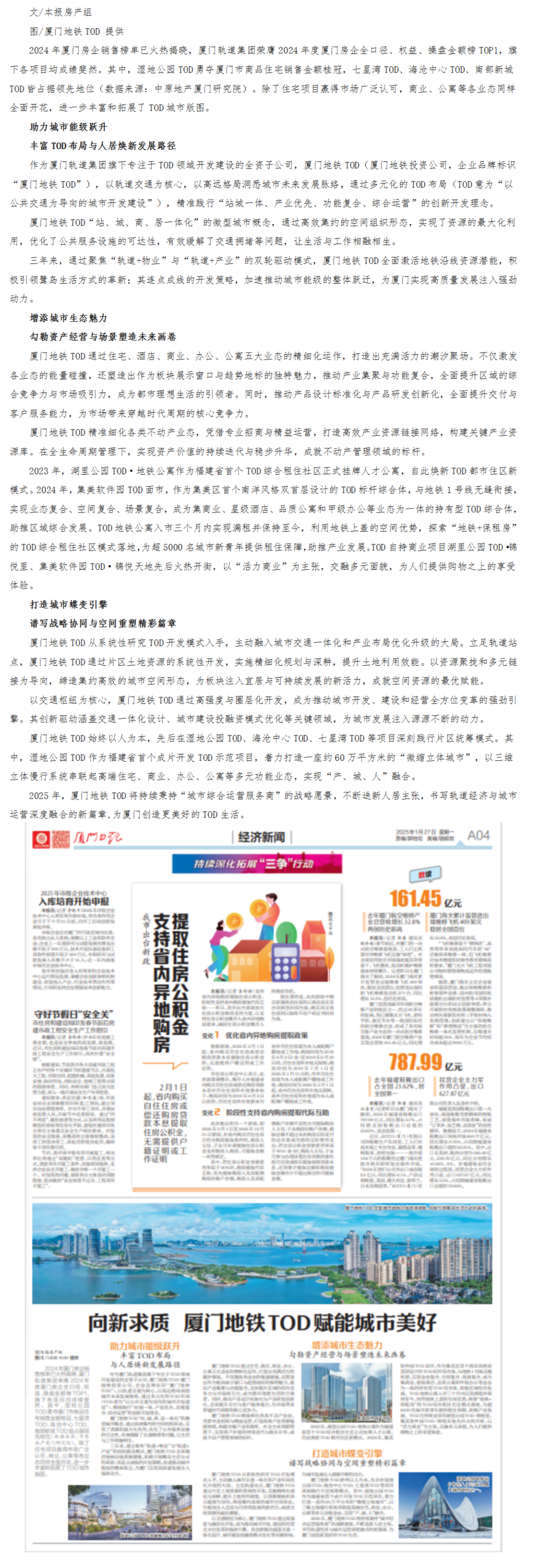 【厦门日报】向新求质 厦门地铁TOD赋能城市美好