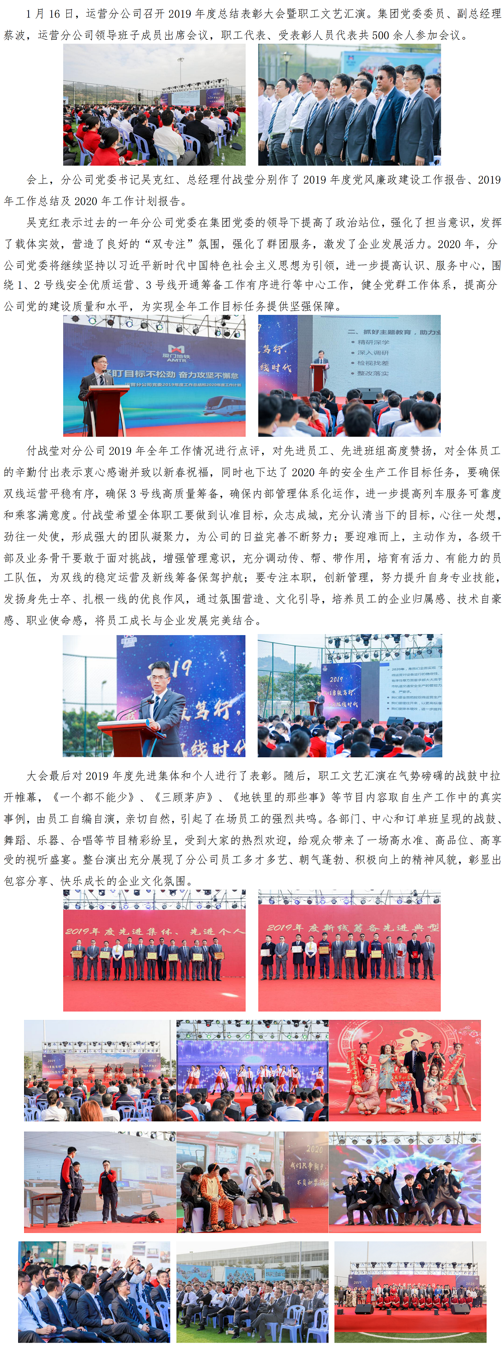 厦门轨道集团运营分公司召开2019年度总结表彰大会暨职工文艺汇演