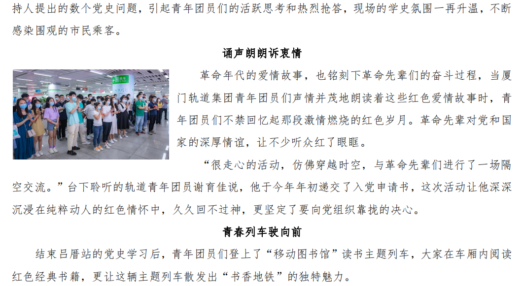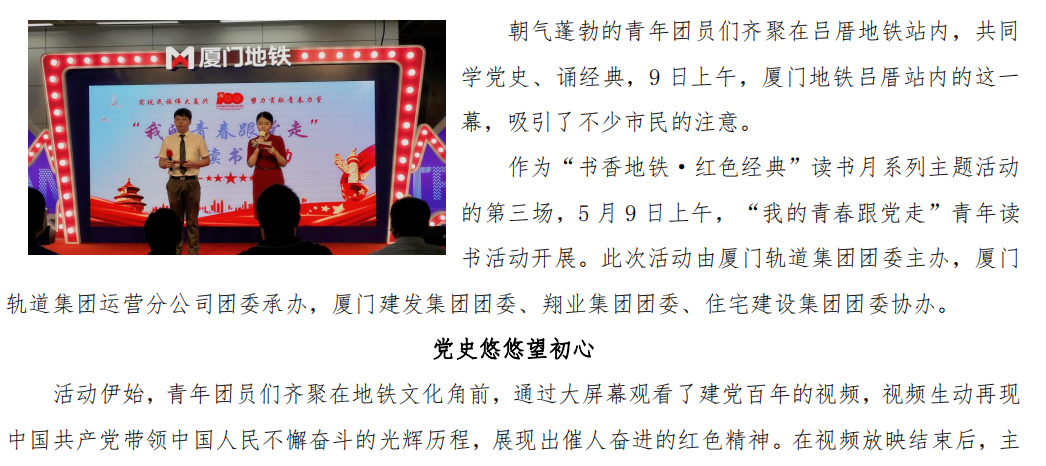 【书香地铁·红色经典】“我的青春跟党走”青年读书活动在吕厝站开展