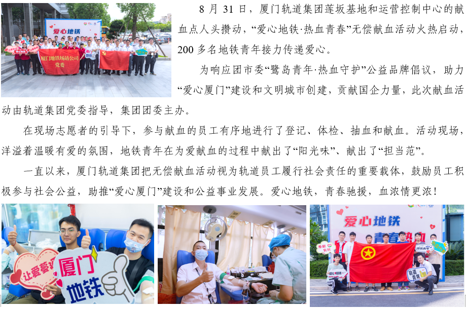 青春热血,为爱集结——厦门地铁开展无偿献血活动