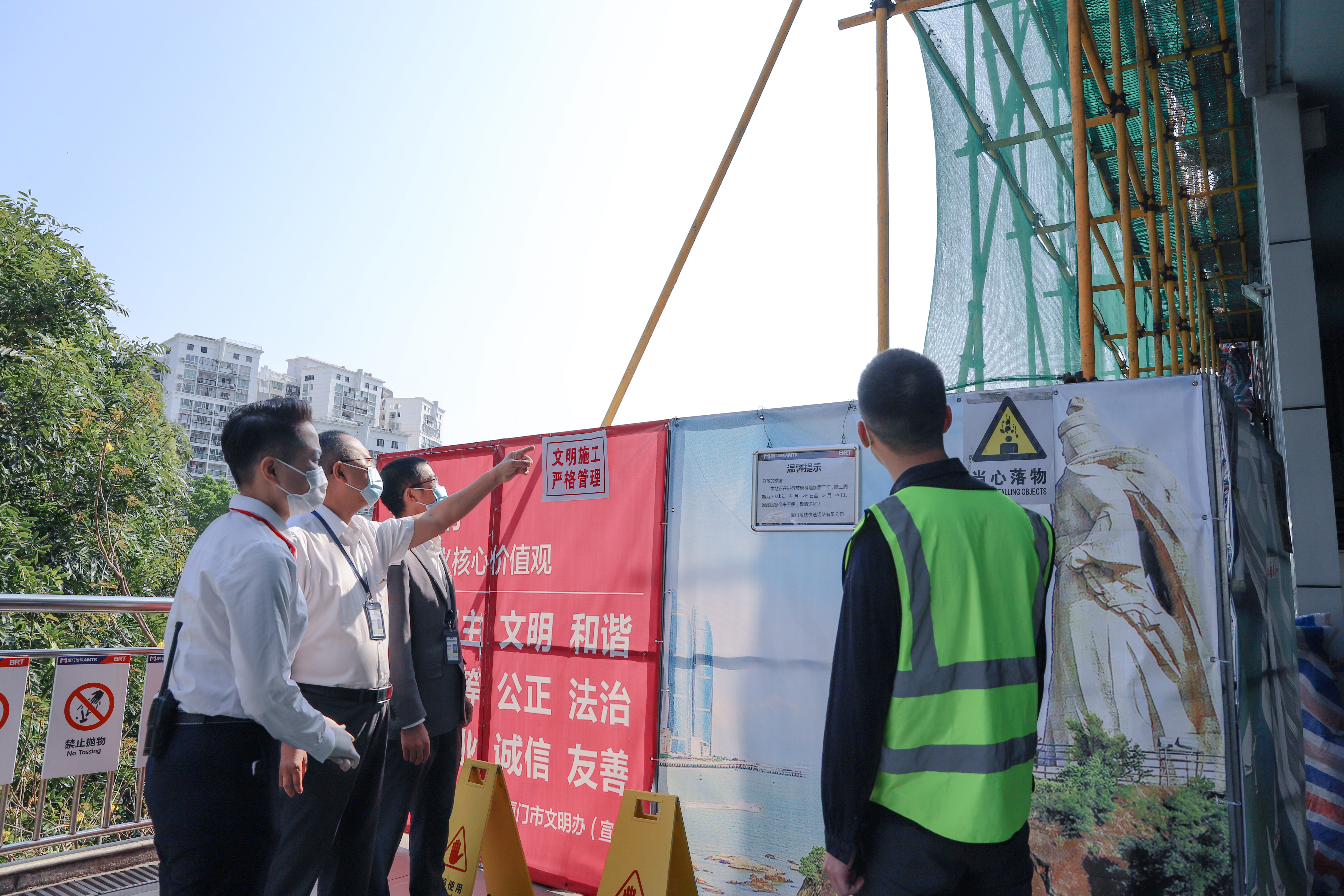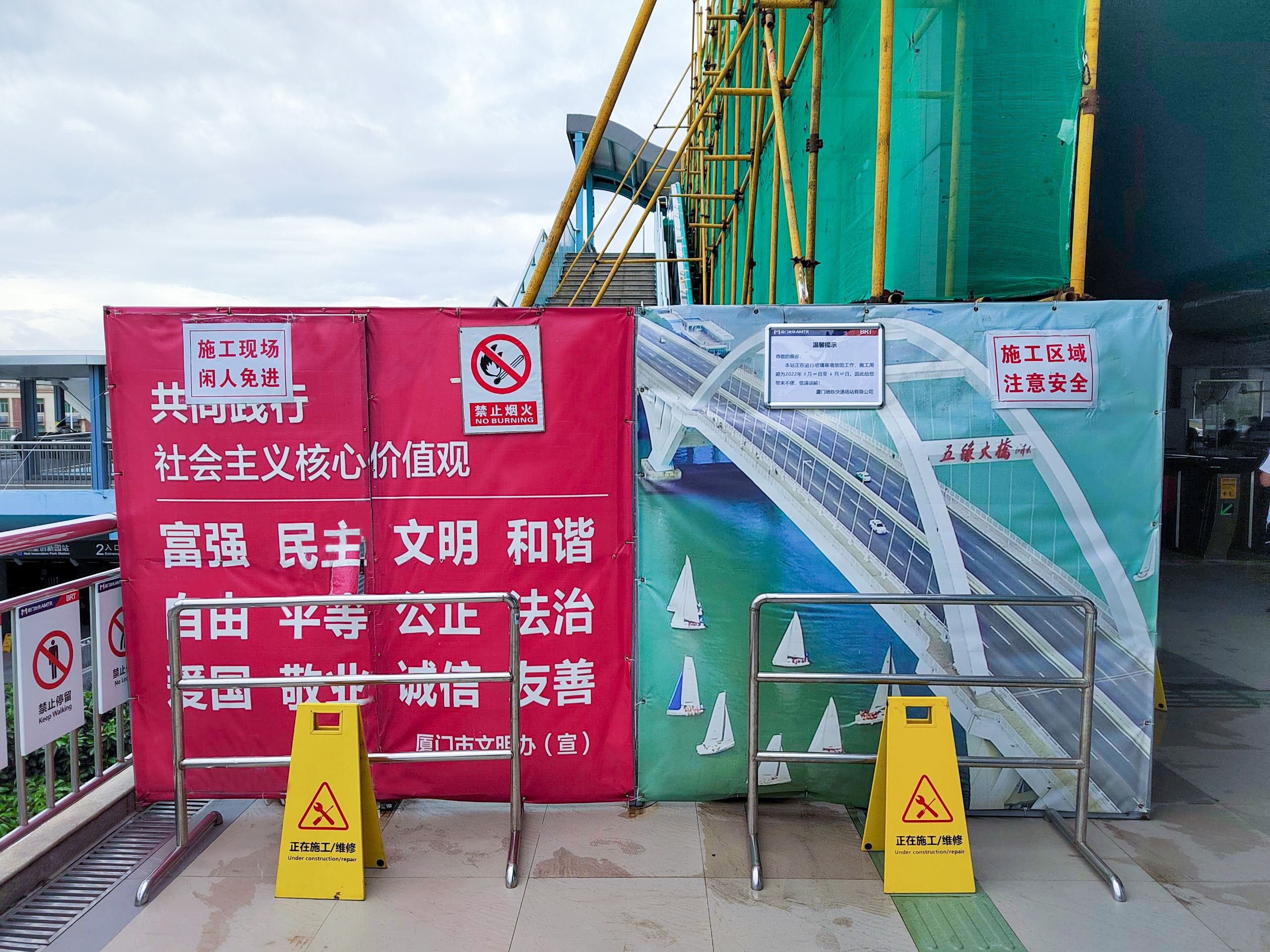 场站公司按照文明施工的规定和要求,规范了BRT行驶车道、应急通道的日常养护作业标准,合理安排组织施工作业,减少施工对站点周边居民和环境的影响;目前4个站点改造工程均已统一了施工作业现场围挡风格并张贴“社会主义核心价值观”等公益宣传,助力文明典范城市创建。