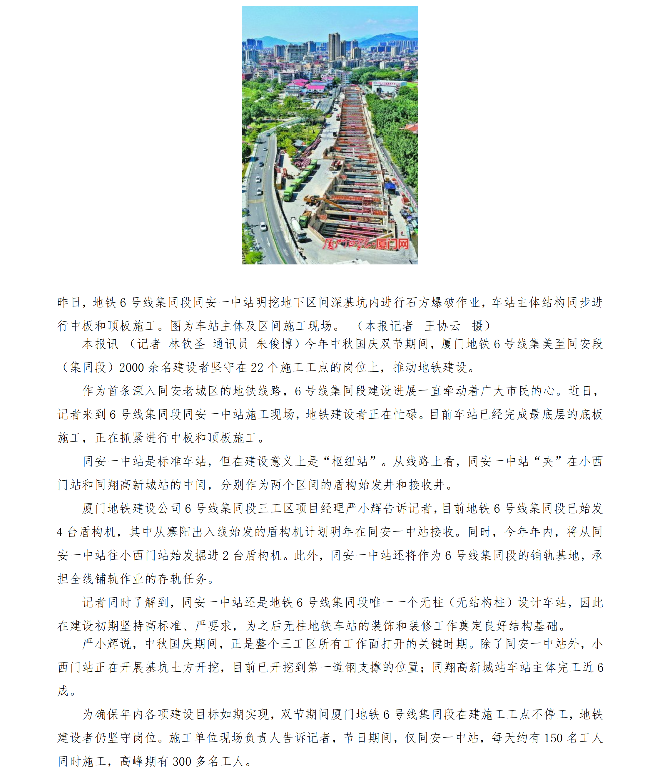 【厦门日报】地铁建设者 坚守岗位攻坚“枢纽站”