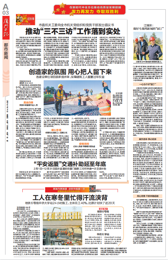 【厦门日报】:工人在寒冬里忙得汗流浃背