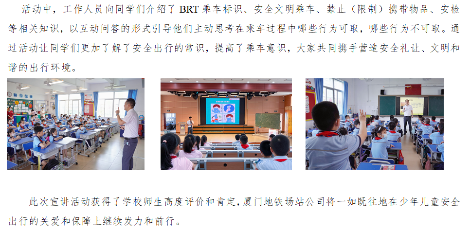 安全“童”行 健康成长,场站公司开展安全主题宣传进校园活动