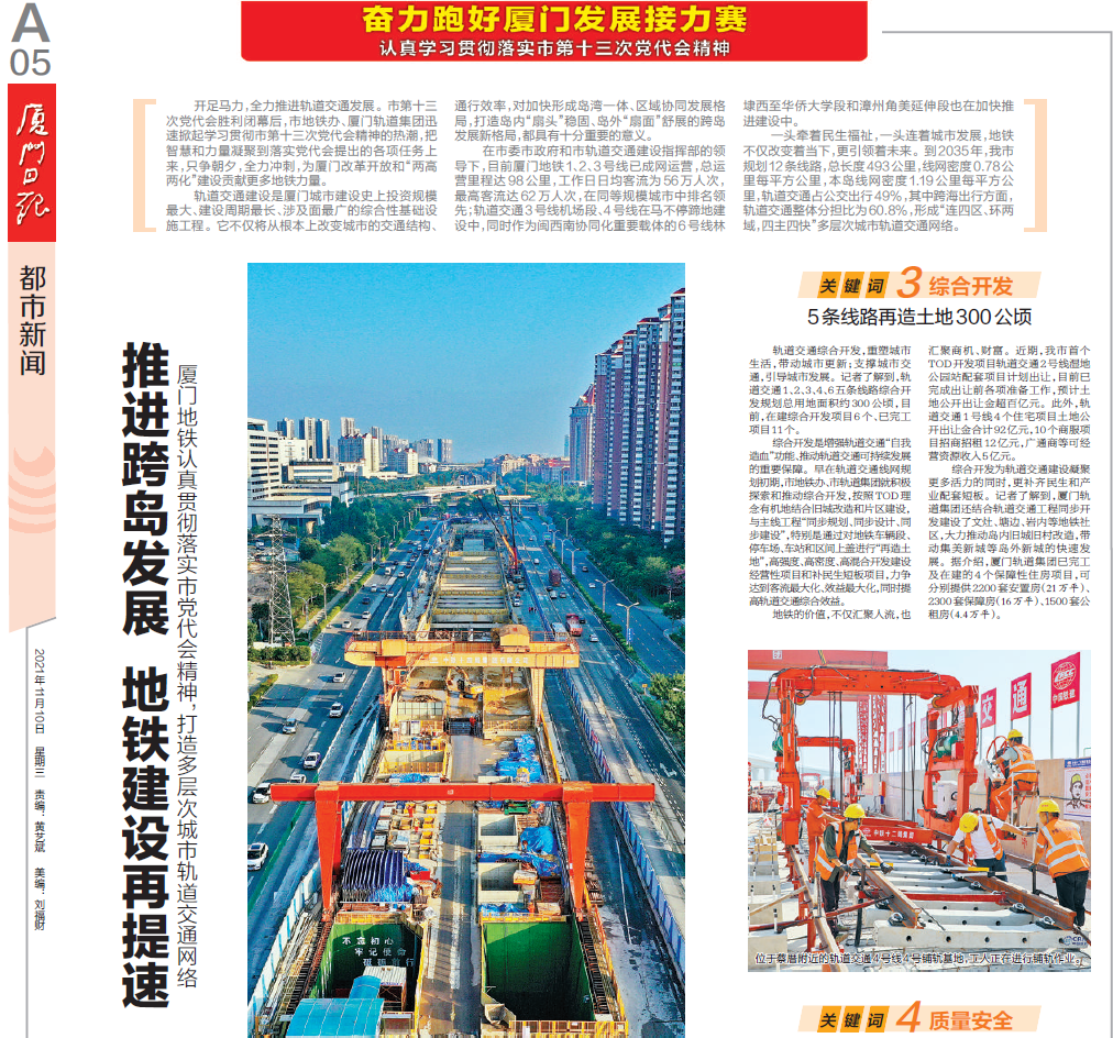 【厦门日报】:推进跨岛发展 地铁建设再提速