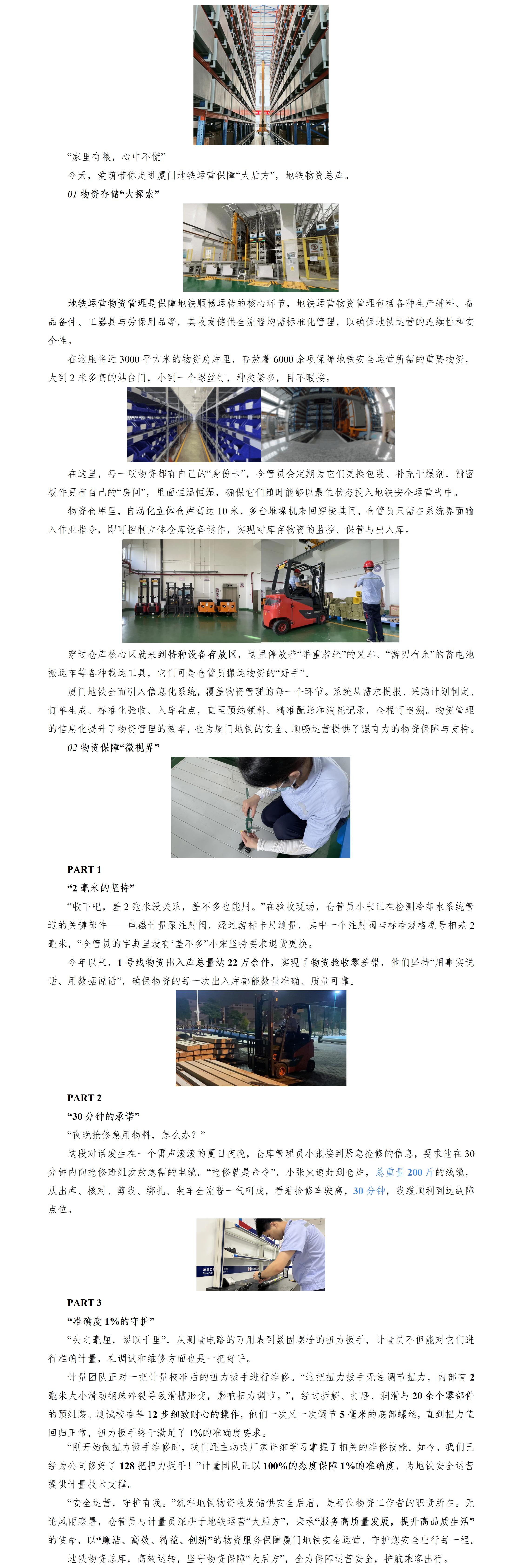 【品牌创建 | 运行更安全】护航出行 地铁物资保障“大后方”