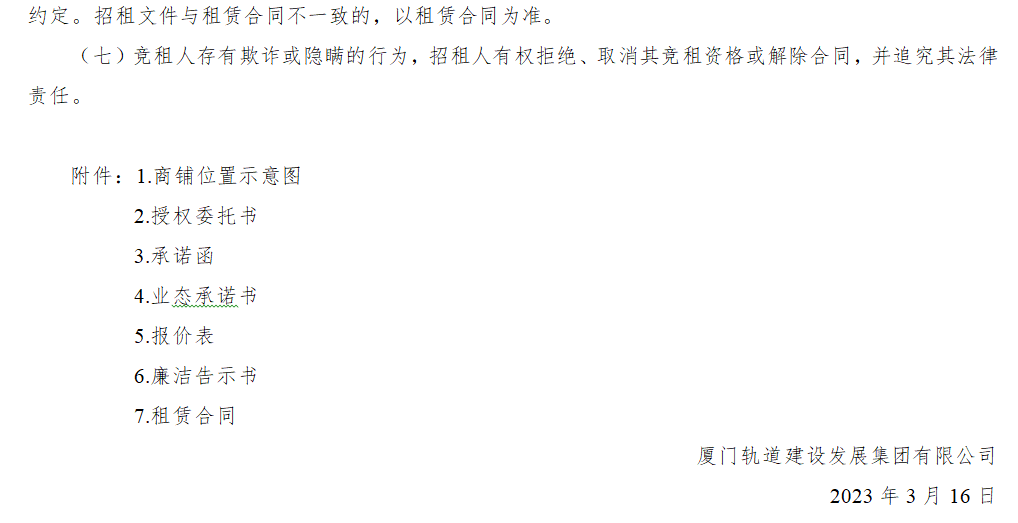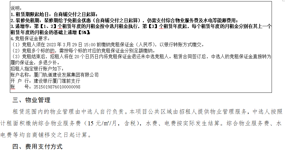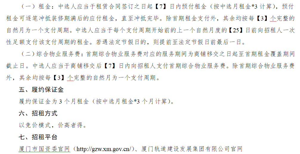 厦门轨道交通董任北项目第二批商铺公开招租方案公示