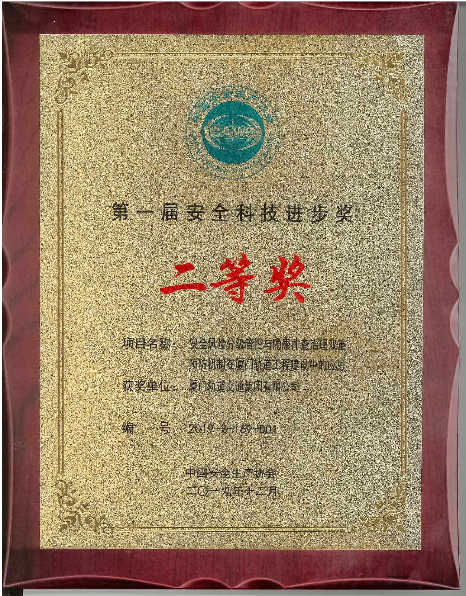 近日,在中国安全生产协会主办的首届安全科技进步奖颁奖大会上,福建省荣获两个二等奖,一个三等奖,其中由厦门轨道集团编写的《安全风险分级管控与隐患排查治理双重预防机制在厦门轨道工程建设中的应用》(以下简称“《应用》”)成果荣获二等奖。