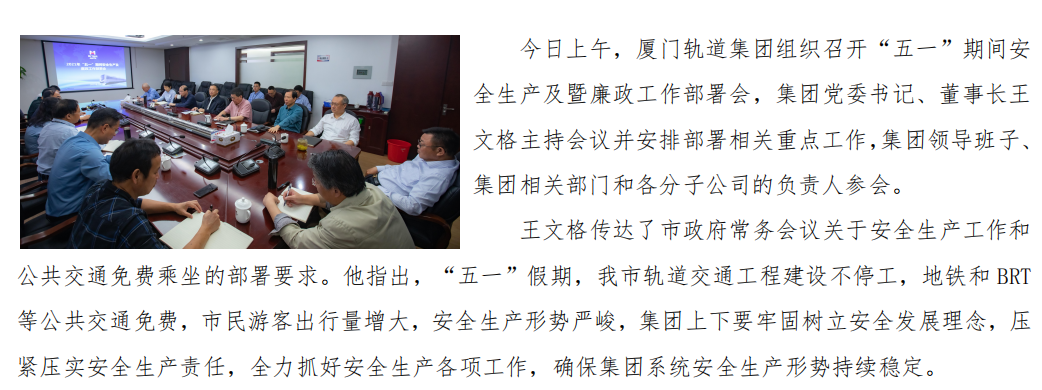 厦门轨道集团召开“五一”期间安全生产及廉政工作部署会