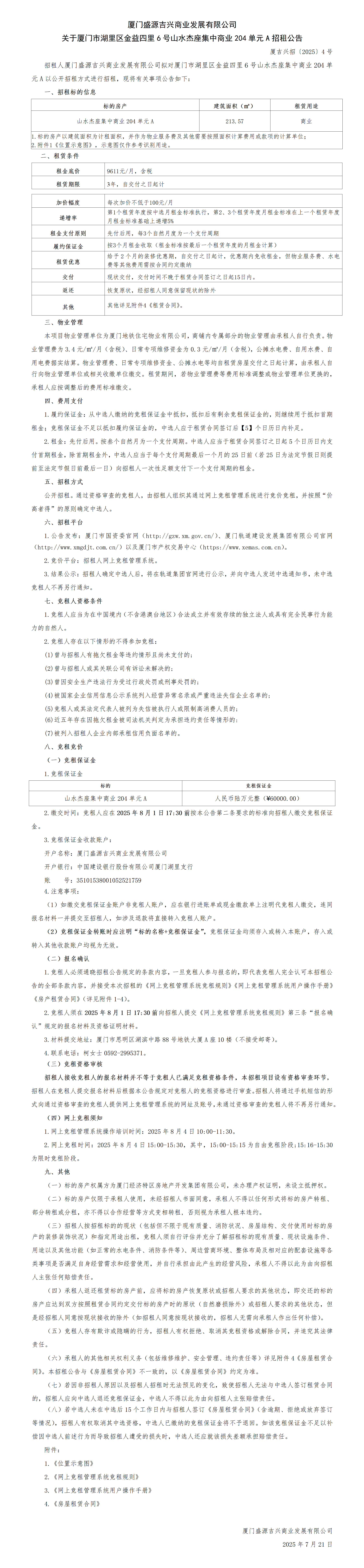 关于厦门市湖里区金益四里6号山水杰座集中商业204单元A招租公告