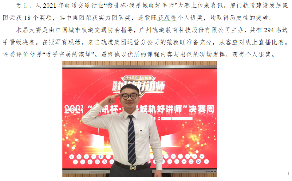 喜讯!厦门地铁获“我是城轨好讲师”大赛多个奖项