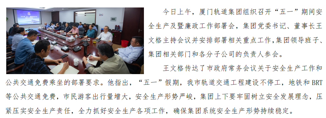 厦门轨道集团召开“五一”期间安全生产及廉政工作部署会