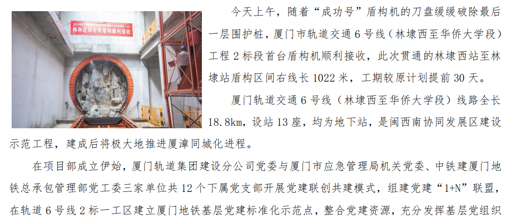 厦门市轨道交通6号线林埭西至林埭区间贯通