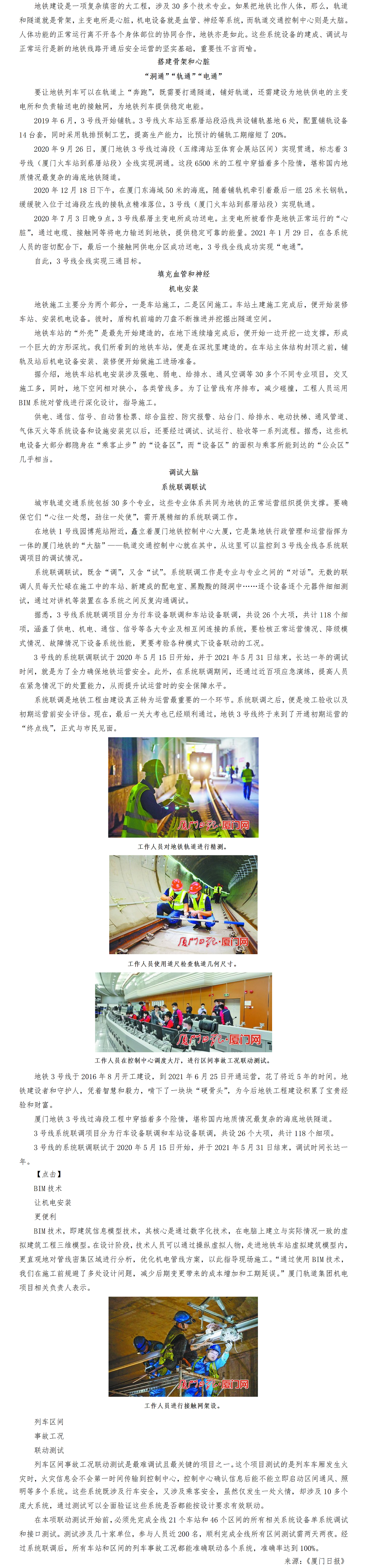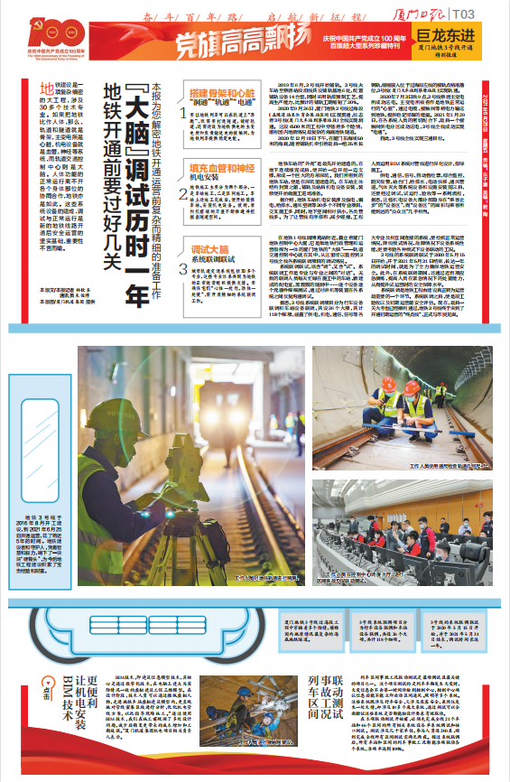 【厦门日报】:巨龙东进-厦门地铁3号线开通》专刊报道-《“大脑”调试历时一年》