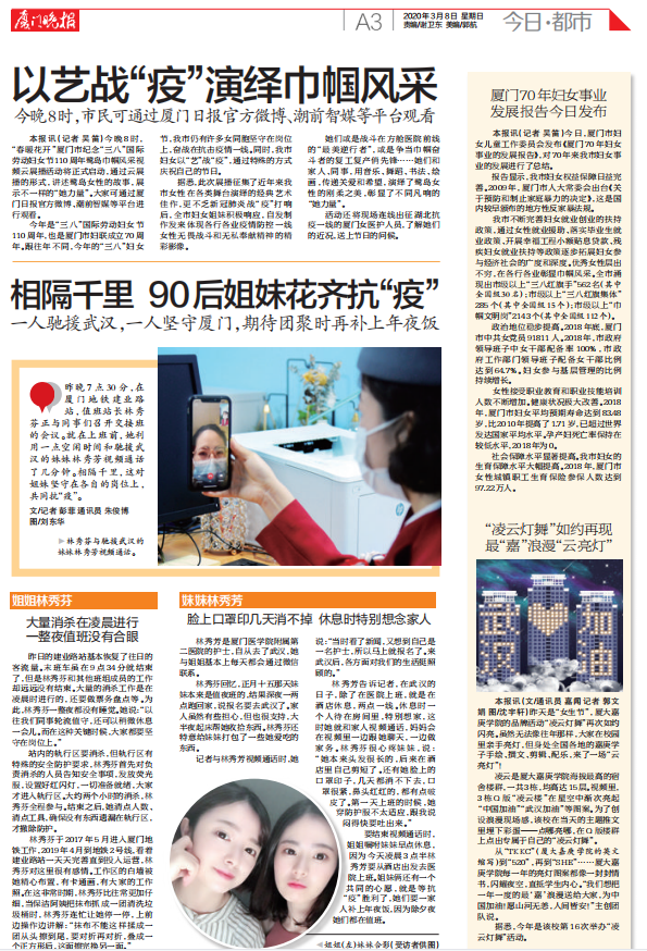 【厦门晚报】:相隔千里,90后姐妹花齐抗“疫”