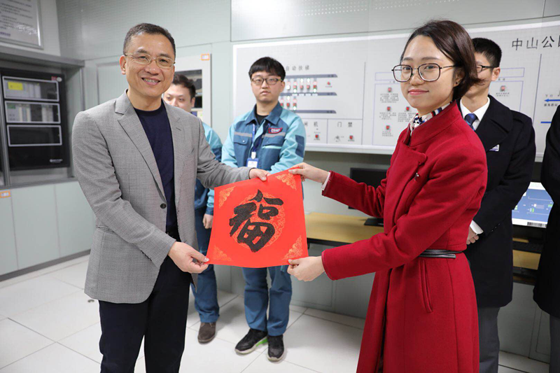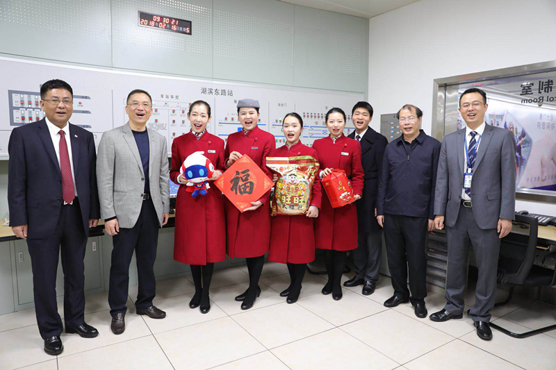 王文格董事长代表集团公司向坚守一线的员工们致以最诚挚的节日问候与新春祝福。慰问过程中,集团领导在控制中心听取运营事业总部有关春运保障的情况汇报,走访各车站仔细询问车站运营情况和现场员工工作生活情况。王文格董事长为一线员工送上新春“福”字,张建军副书记为大家送上地铁吉祥物,祝福春节坚守一线的员工新春快乐,阖家幸福,寄语大家要用更饱满的状态做好本职工作,保障春运期间运营安全,为乘客提供优质服务,为厦门地铁品牌建设添砖加瓦。