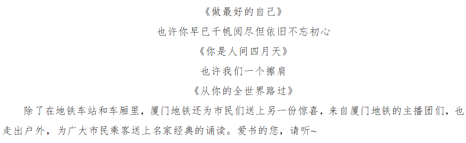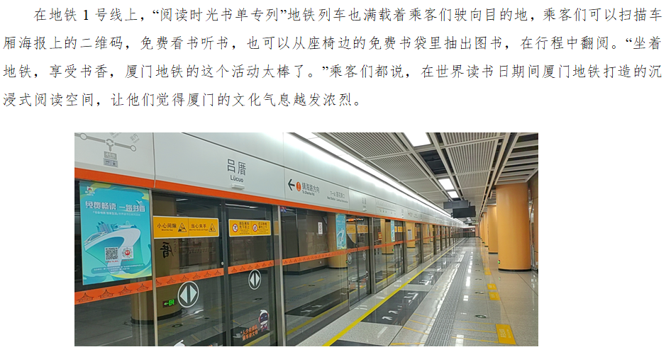悦享生活,书香地铁和您一直相伴