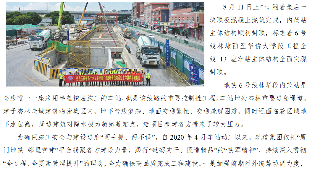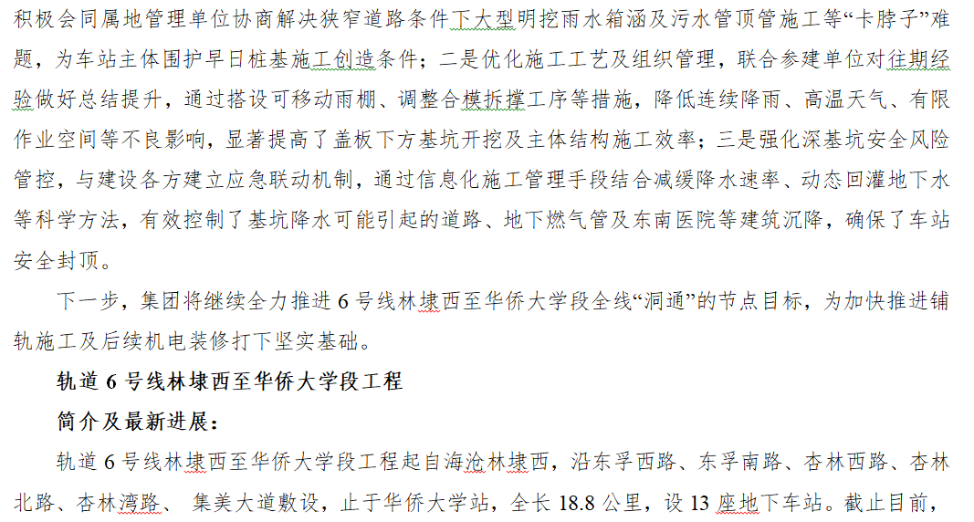 地铁6号线林华段13座车站主体结构全面封顶