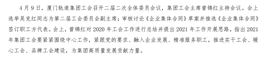 厦门轨道交通集团有限公司工会委员会召开第二届二次全体委员会议