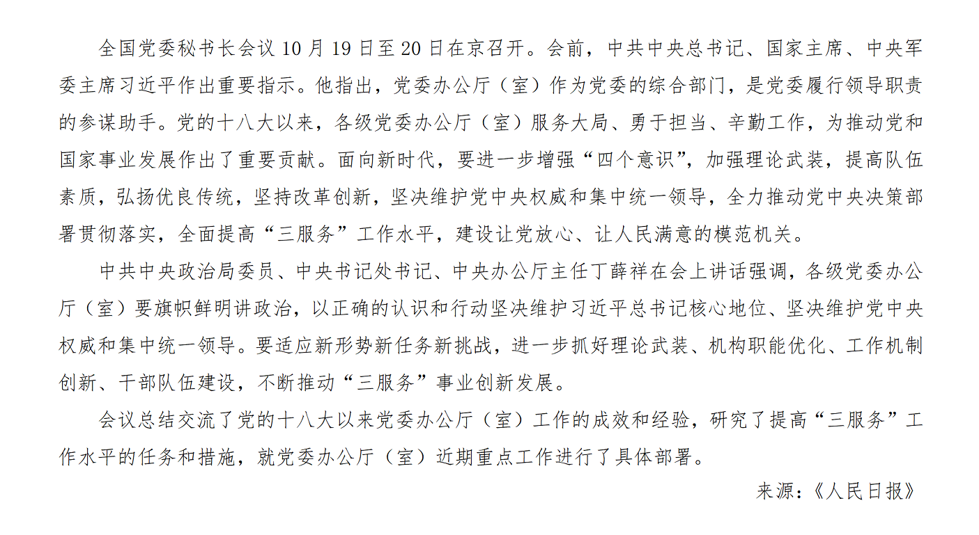 习近平对全国党委秘书长会议作出重要指示,强调坚决维护党中央权威和集中统一领导,全力推动党中央决策部署贯彻落实