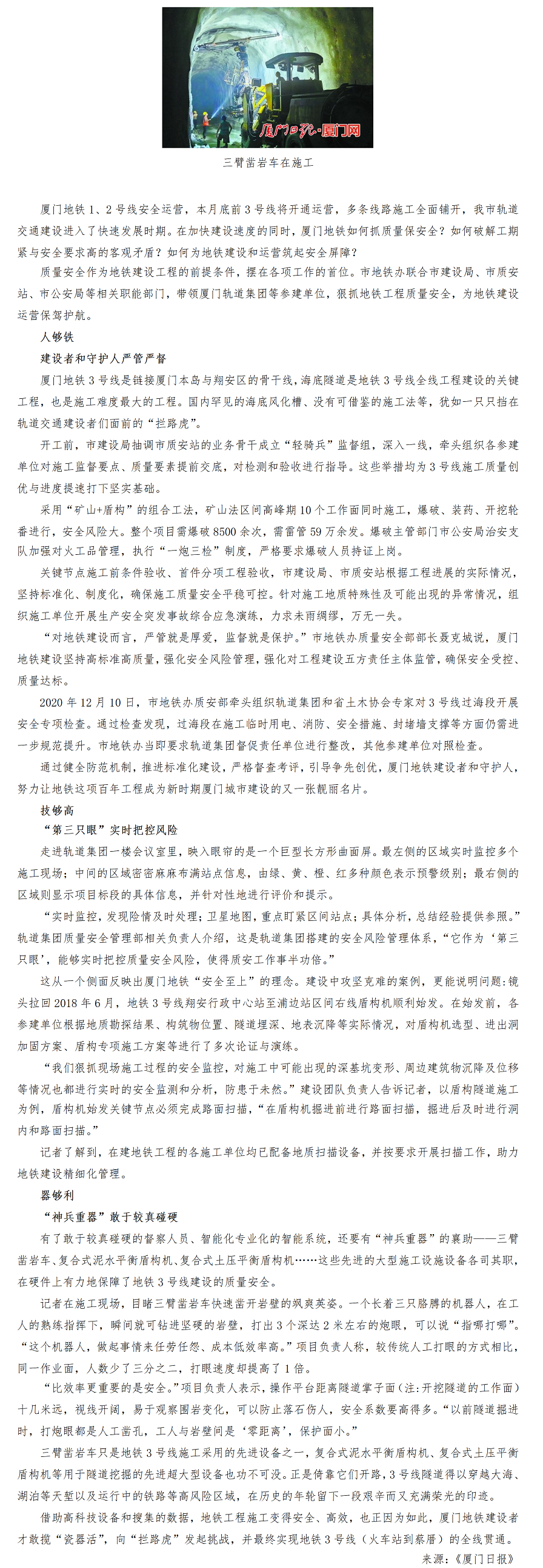 【厦门日报】:厦门地铁如何为安全加码?地铁3号线本月底前将开通运营,揭秘其质量安全把控的三大要素