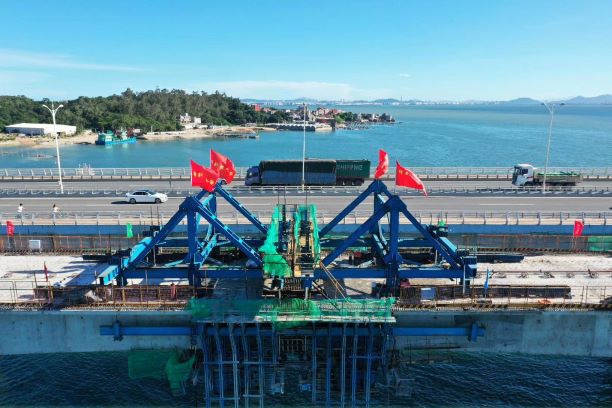 丙城区间连接着同安区丙洲岛站和翔安区城场站,位于海翔大道北侧,区间全长3.8公里。跨海段主桥采用悬臂浇筑法(挂篮)施工,已于今年6月13日顺利合龙。