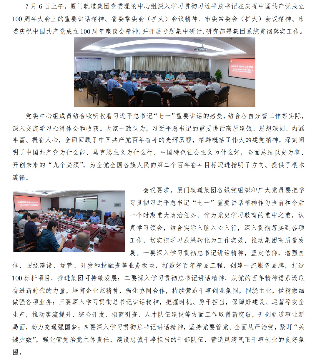 以史鉴今,砥砺奋进——厦门轨道集团党委理论中心组学习贯彻习近平总书记“七一”重要讲话精神