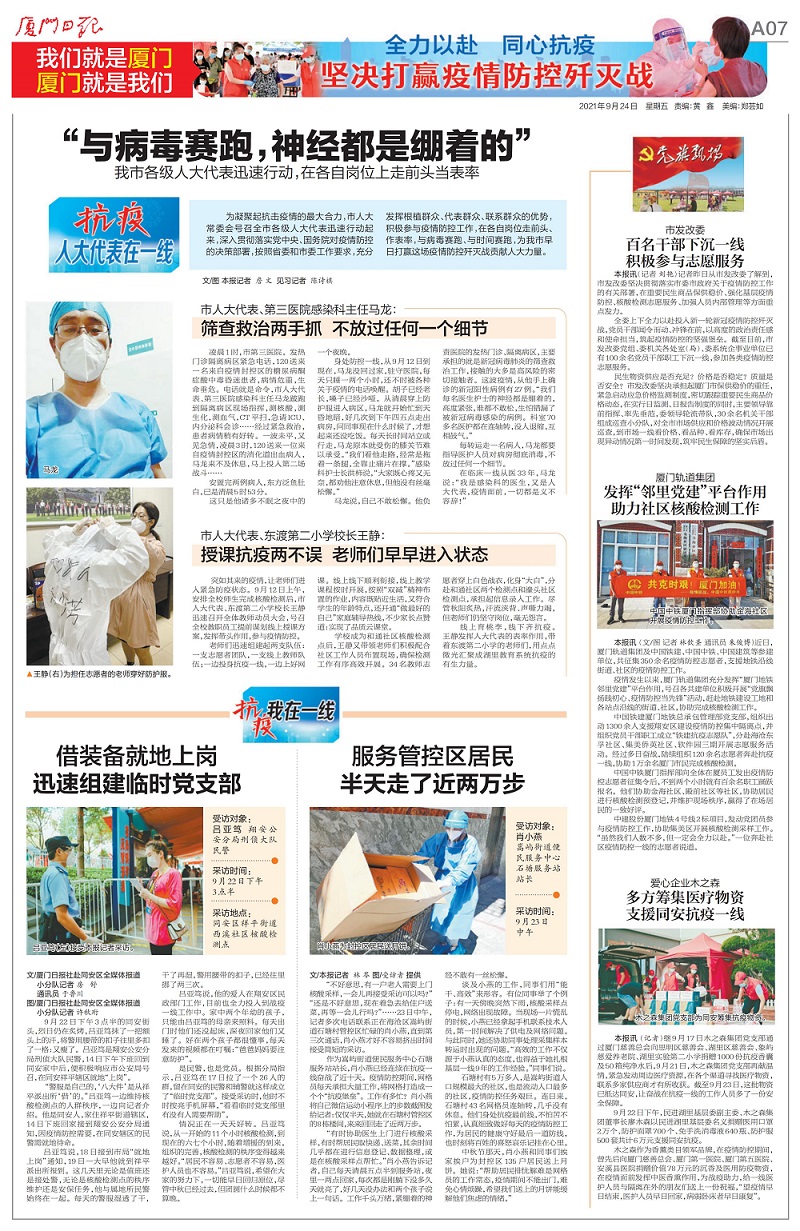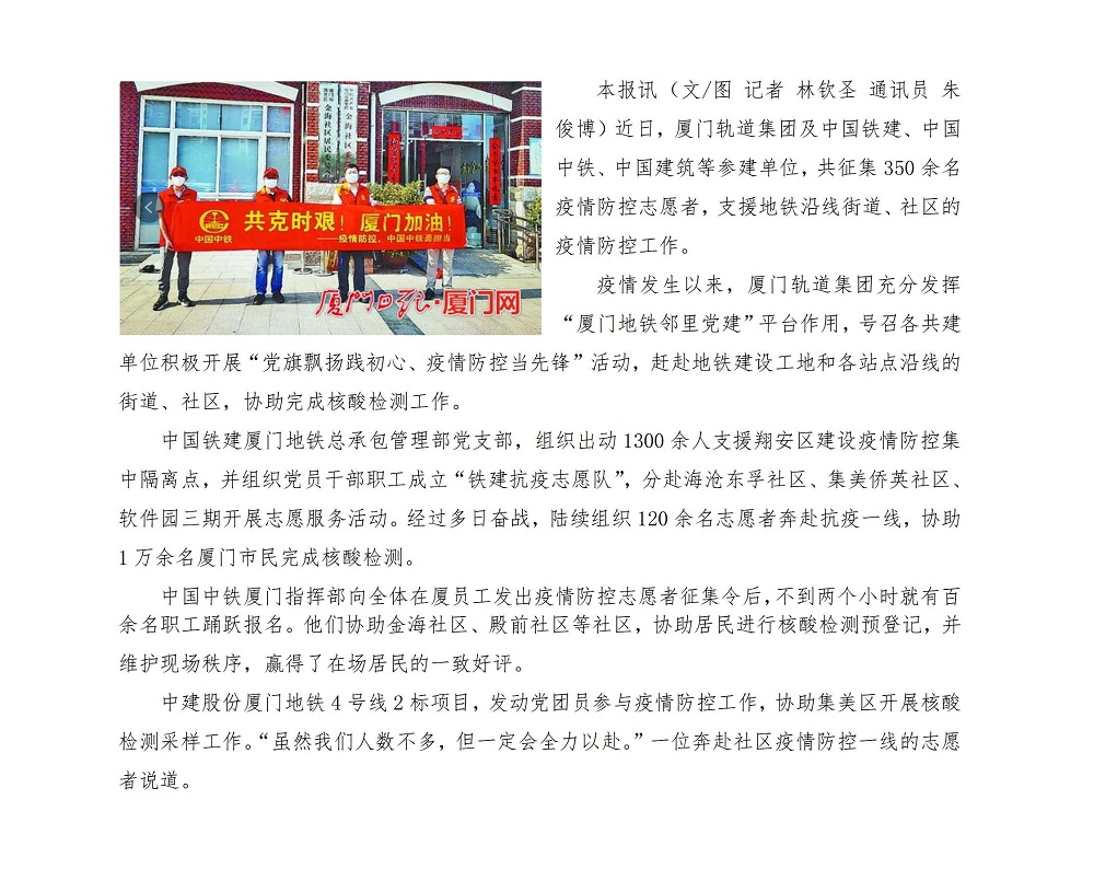【厦门日报】:厦门轨道集团 发挥“邻里党建”平台作用 助力社区核酸检测工作