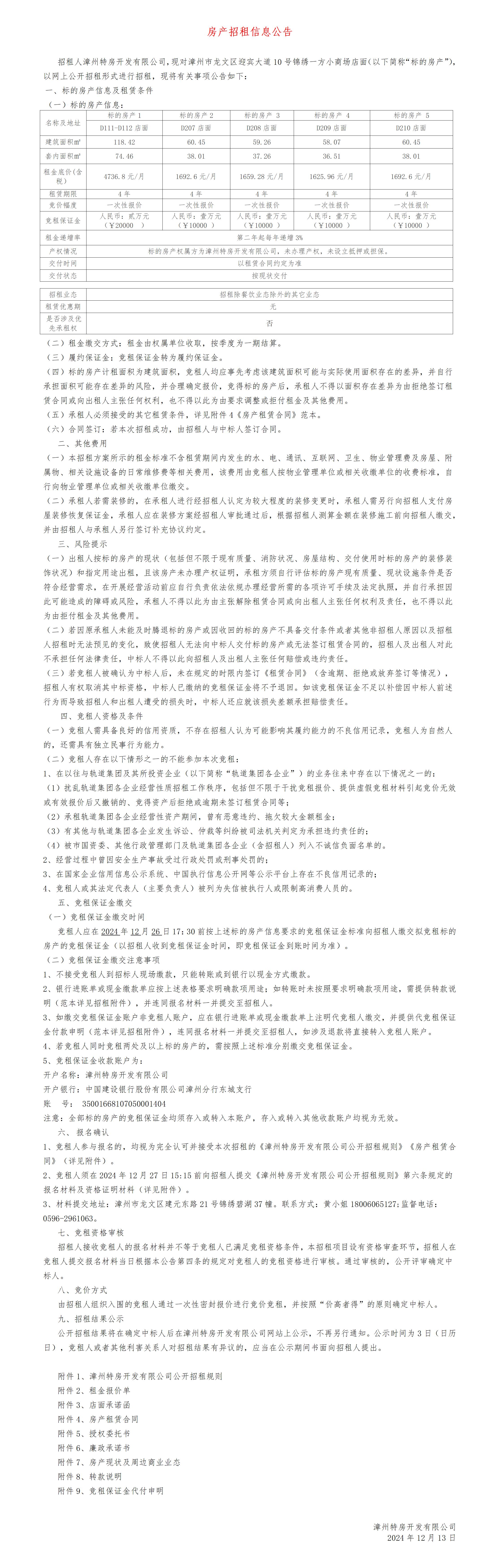 漳特公司锦绣一方小商场店面招租信息公示(第三次)