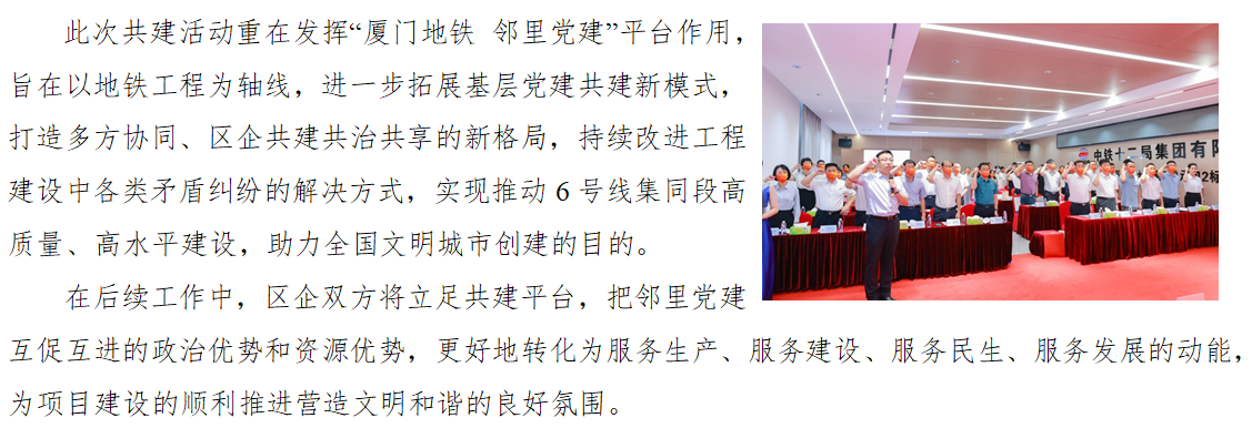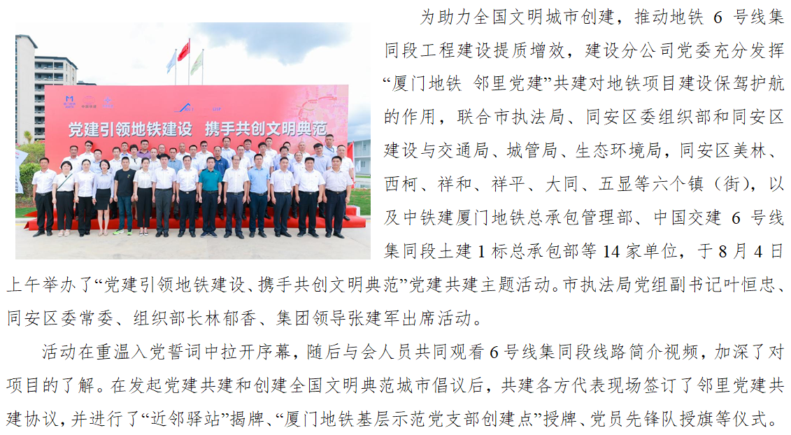 厦门地铁6号线集同段举办“厦门地铁 邻里党建”主题活动