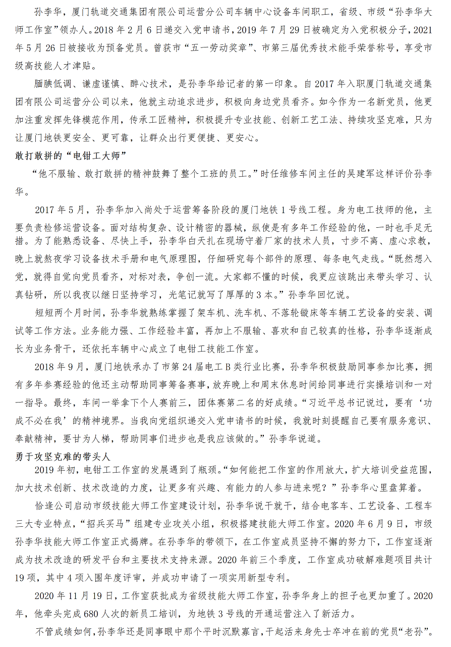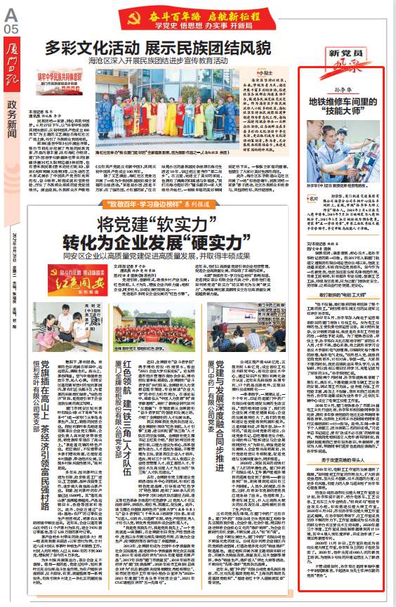 【厦门日报】:地铁维修车间里的“技能大师”