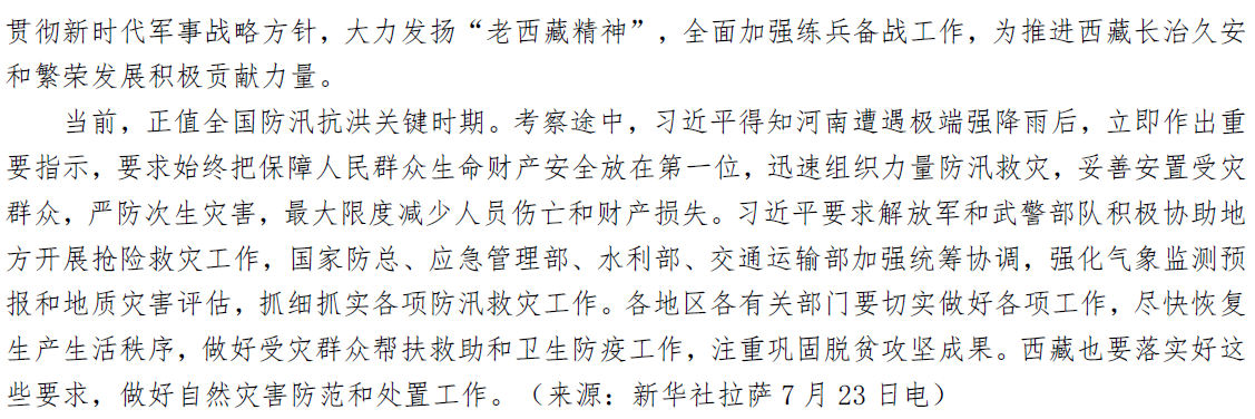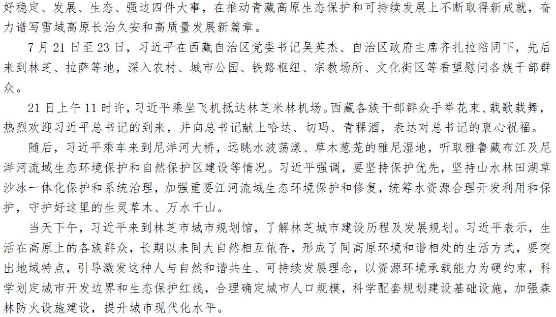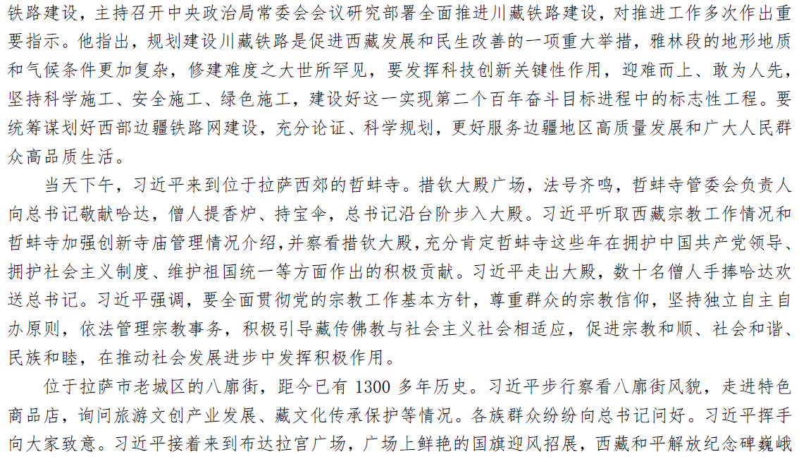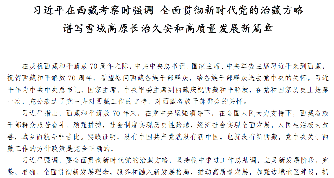 习近平:在西藏考察时强调 全面贯彻新时代党的治藏方略 谱写雪域高原长治久安和高质量发展新篇章