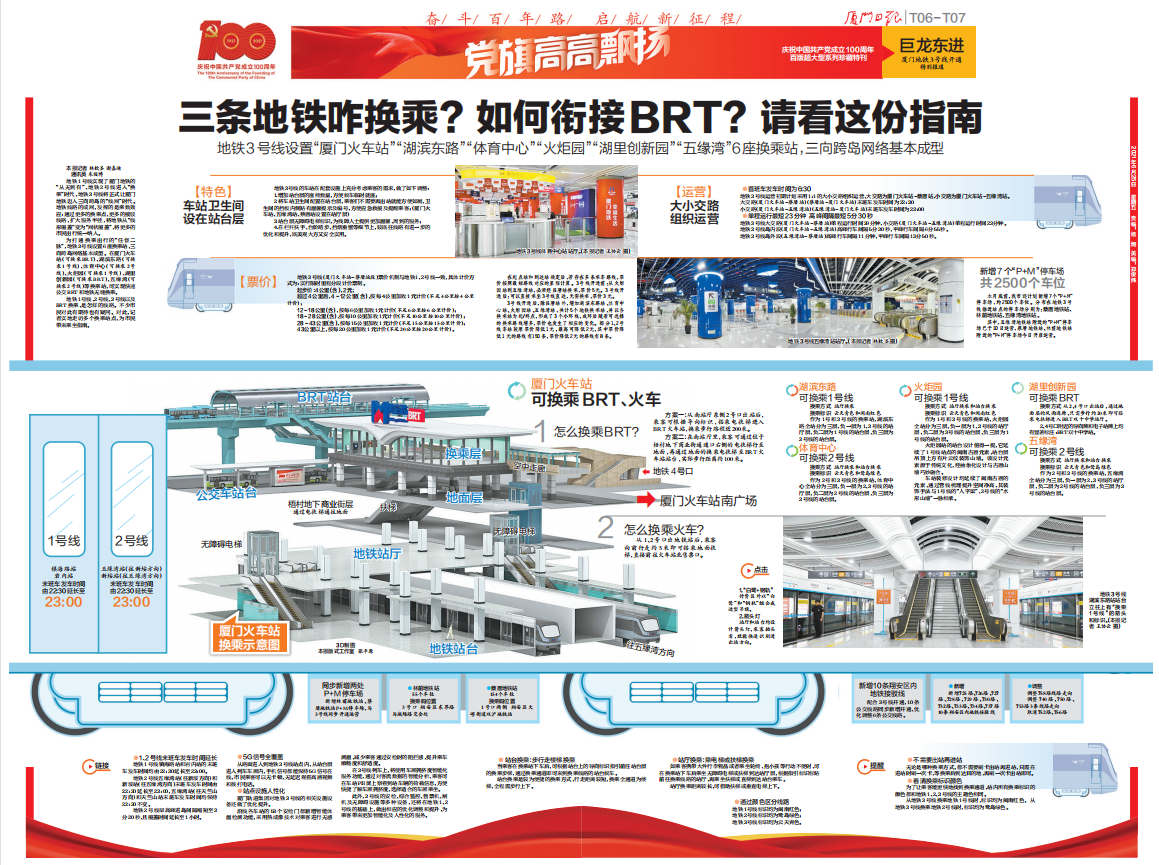 【厦门日报】:巨龙东进-厦门地铁3号线开通》专刊报道-《三条地铁咋换乘?如何衔接BRT?请看这份指南》