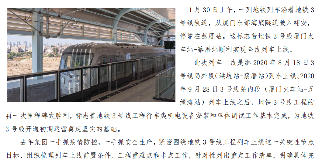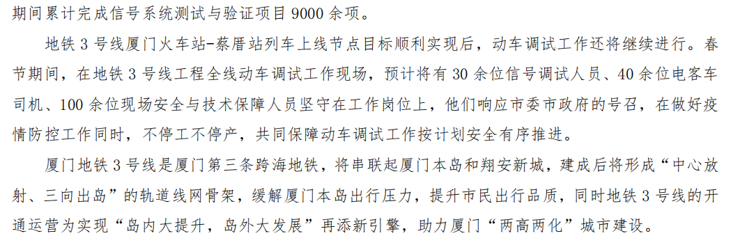 “电通”+列车上线,地铁3号线(厦门火车站-蔡厝站)喜报频传