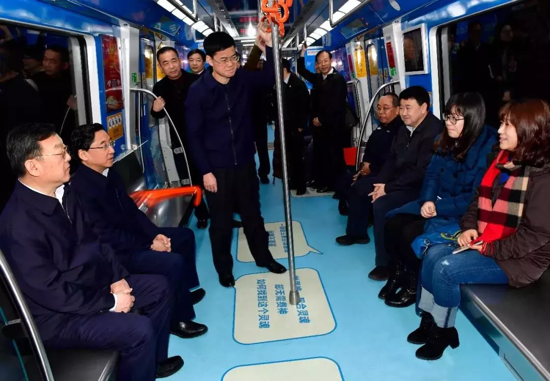 在地铁1号线吕厝站,于伟国、唐登杰等领导登上开往集美方向的列车,在简洁敞亮的车厢里详细了解了列车运行、监控调度等情况,并与同车市民们亲切交流,征求大家对地铁建设和服务的意见建议。