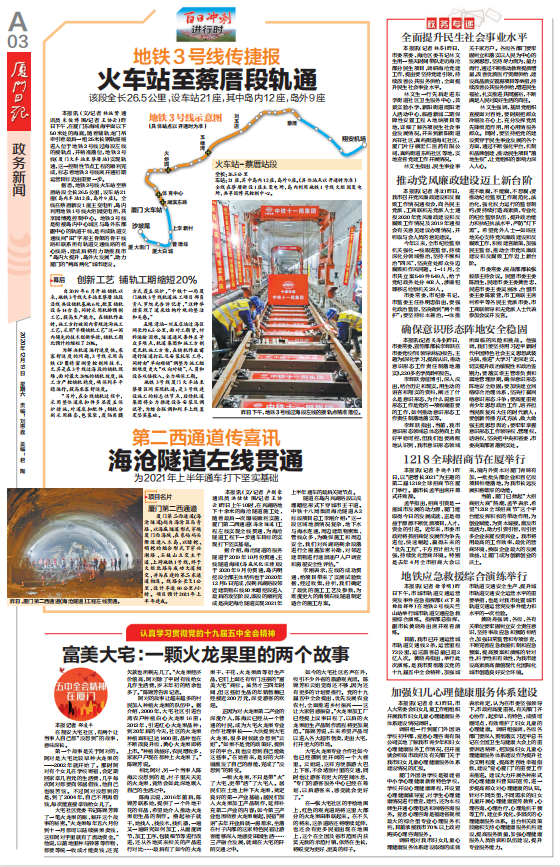 【厦门日报】:地铁3号线传捷报,火车站至蔡厝段轨通