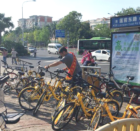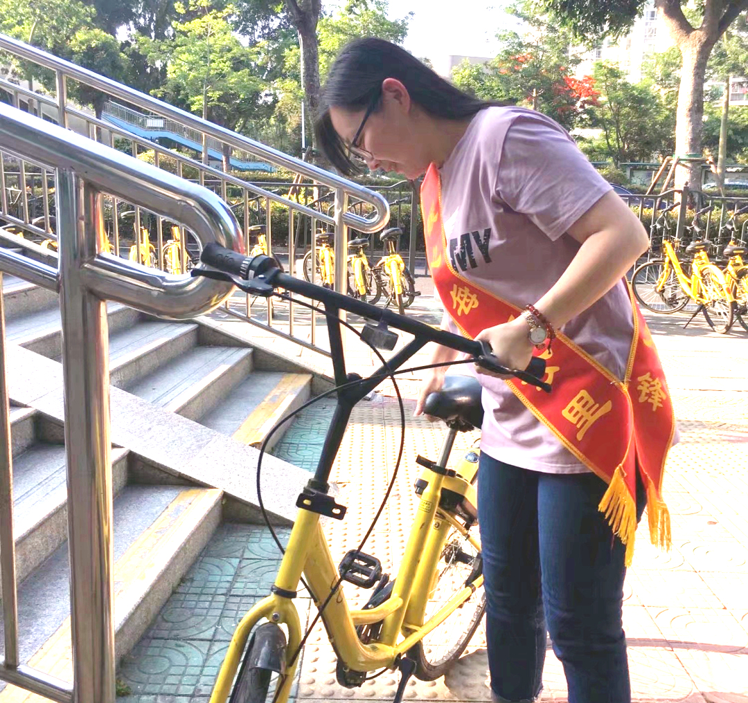 前埔线志愿活动在金榜公园站、前埔枢纽站如期开展。党员志愿者将停放在出入口外、盲道上、马路边的单车一辆辆“归队”,引导市民有序停放共享单车,畅通文明出行路。