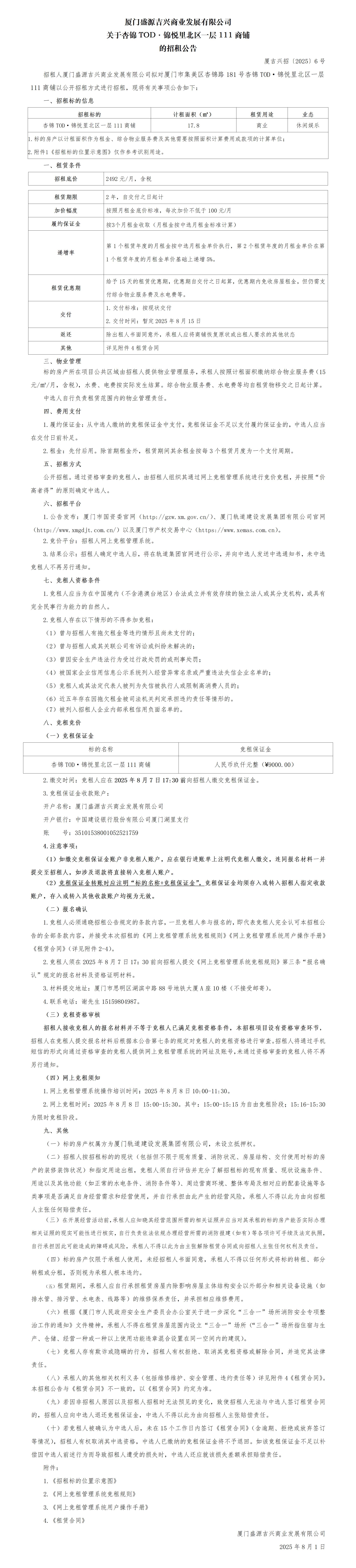 关于杏锦TOD·锦悦里北区一层111商铺的招租公告
