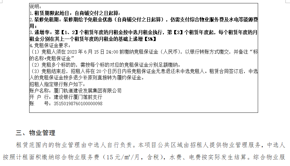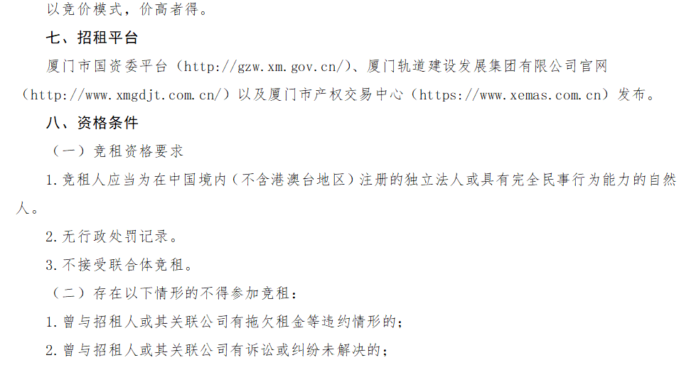 厦门轨道交通董任北项目第四批商铺公开招租方案