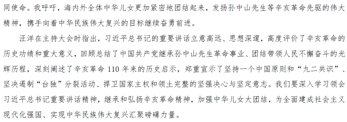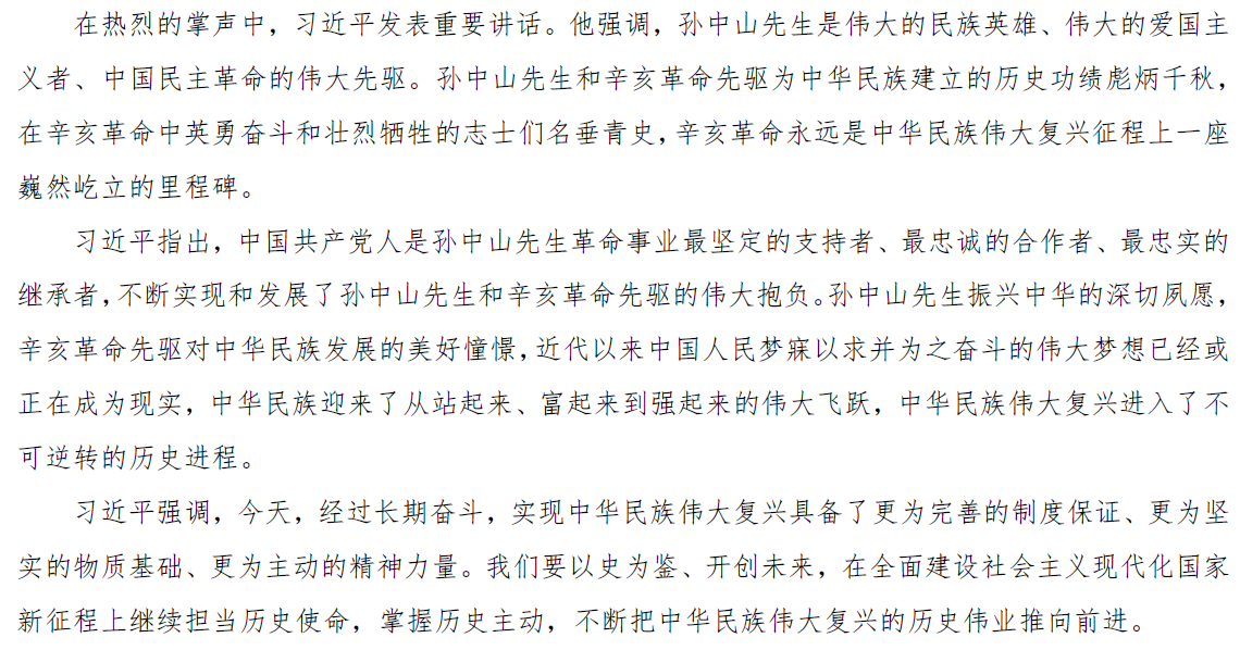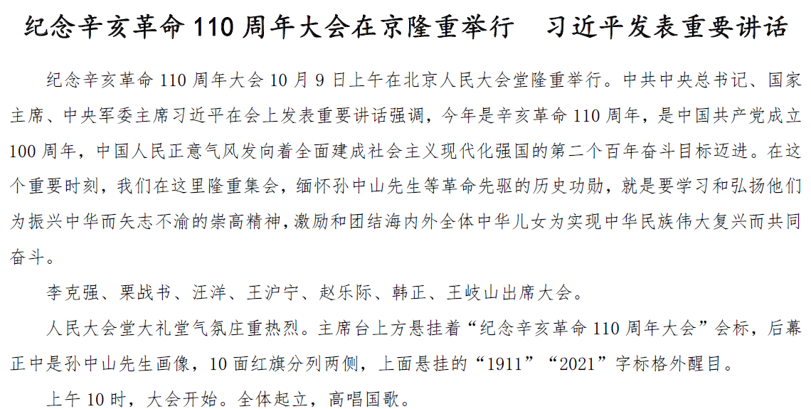 纪念辛亥革命110周年大会在京隆重举行 习近平发表重要讲话