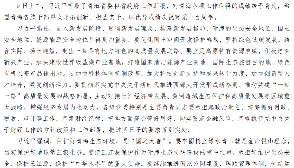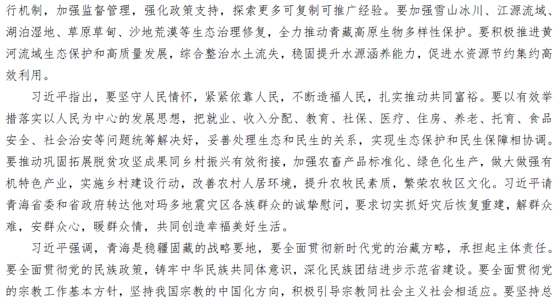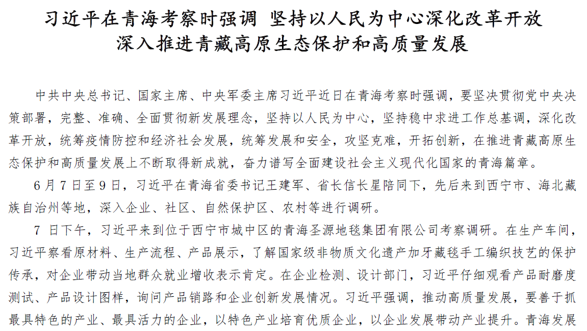 习近平:在青海考察时强调 坚持以人民为中心深化改革开放 深入推进青藏高原生态保护和高质量发展