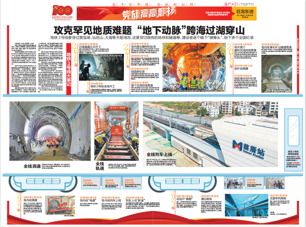 【厦门日报】:巨龙东进-厦门地铁3号线开通》专刊报道-《攻克罕见地质难题 “地下动脉”跨海过湖穿山》