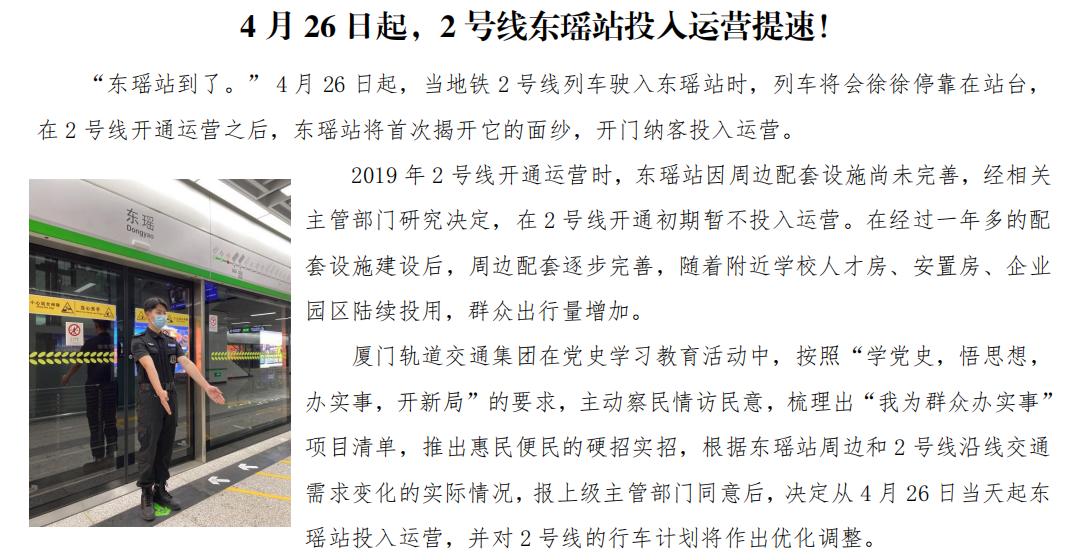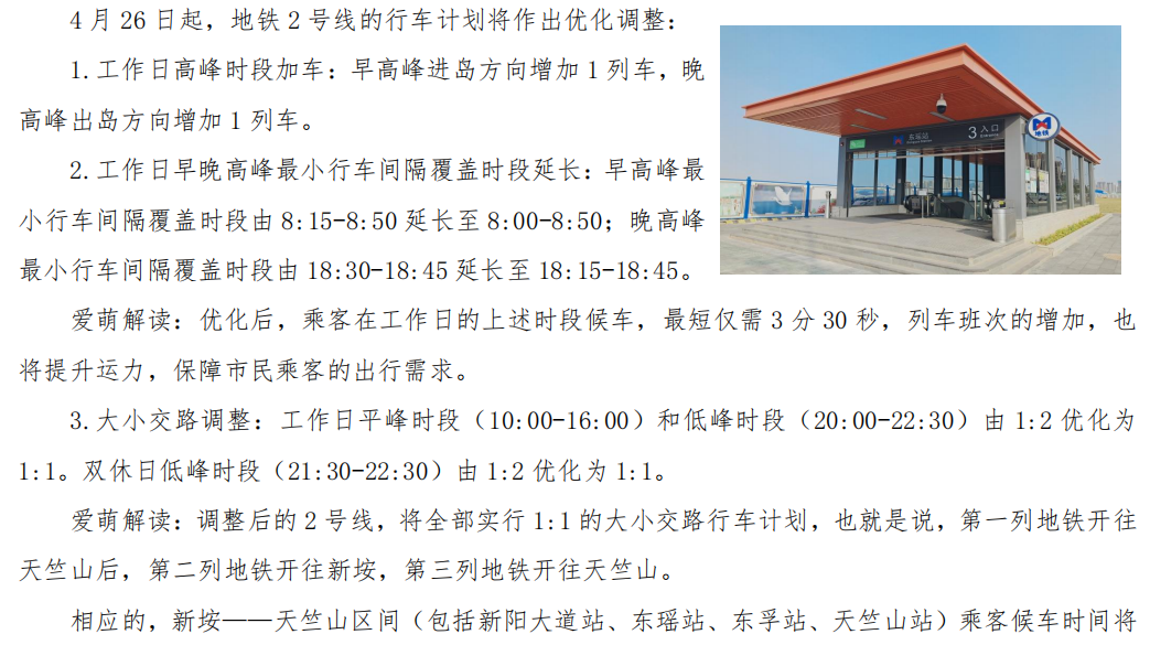 4.26起,2号线东瑶站投入运营提速!