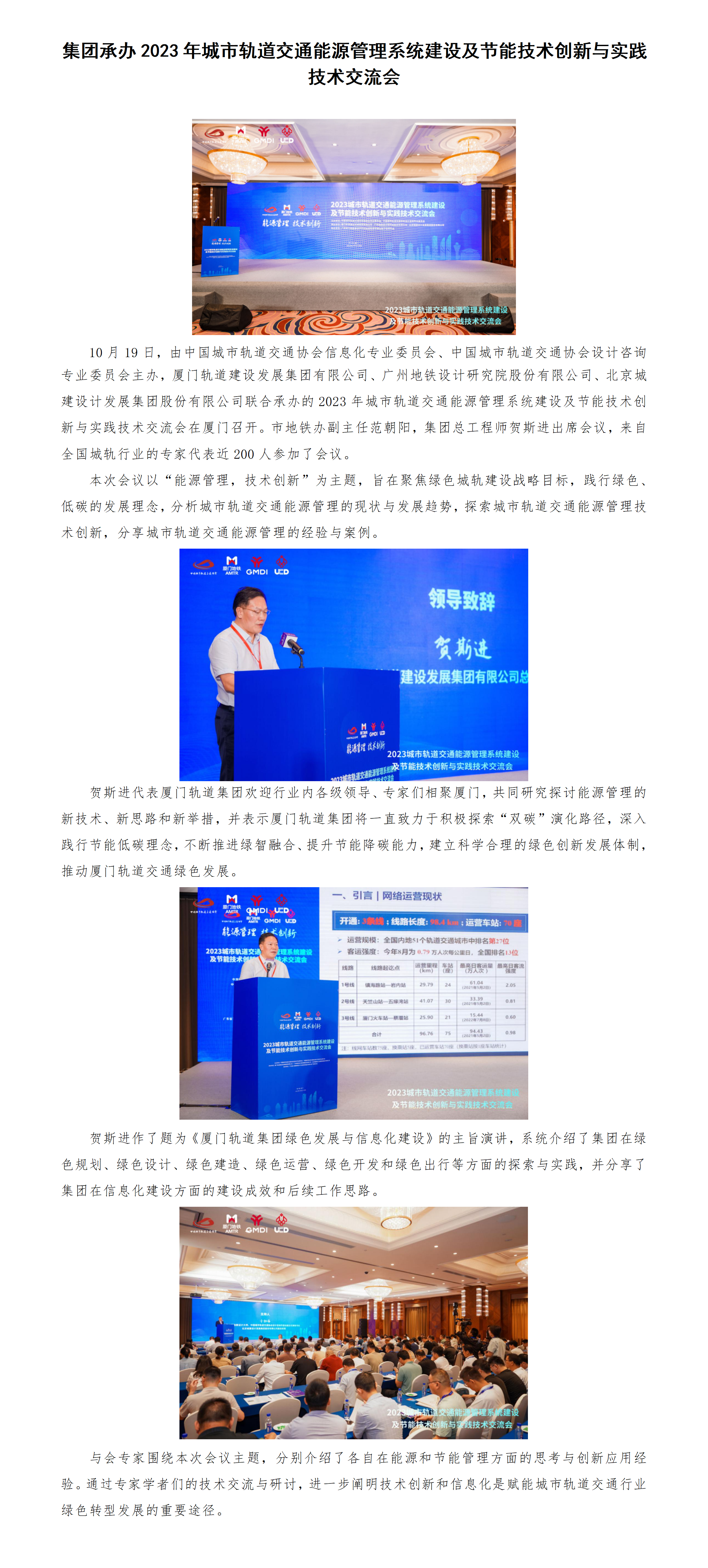 轨道集团承办2023年城市轨道交通能源管理系统建设及节能技术创新与实践技术交流会
