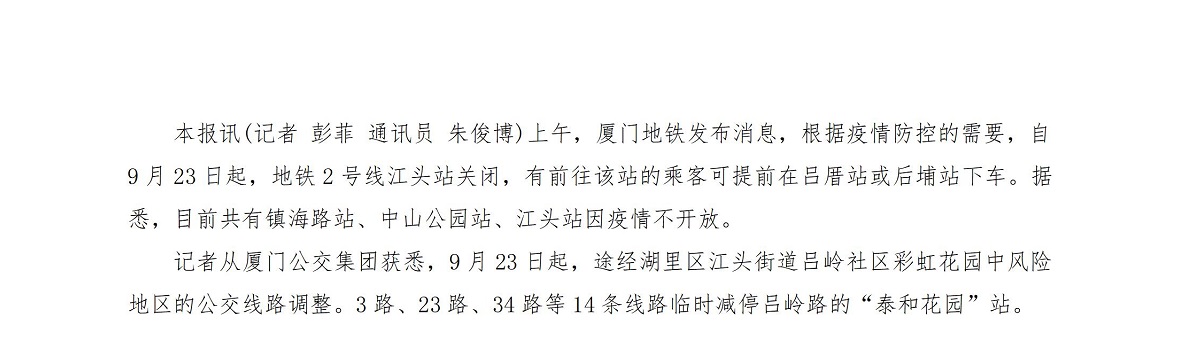 【厦门晚报】:地铁2号线江头站关闭 经彩虹花园公交线调整