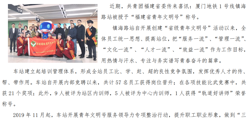 地铁1号线镇海路站,“省青年文明号”拍了拍你